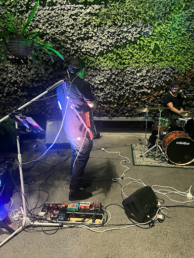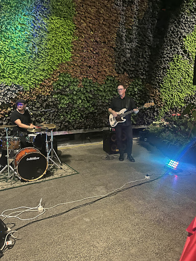 Atmosphere-setting background music over dinner, party music afterward. Soloist doubles as a DJ during breaks.